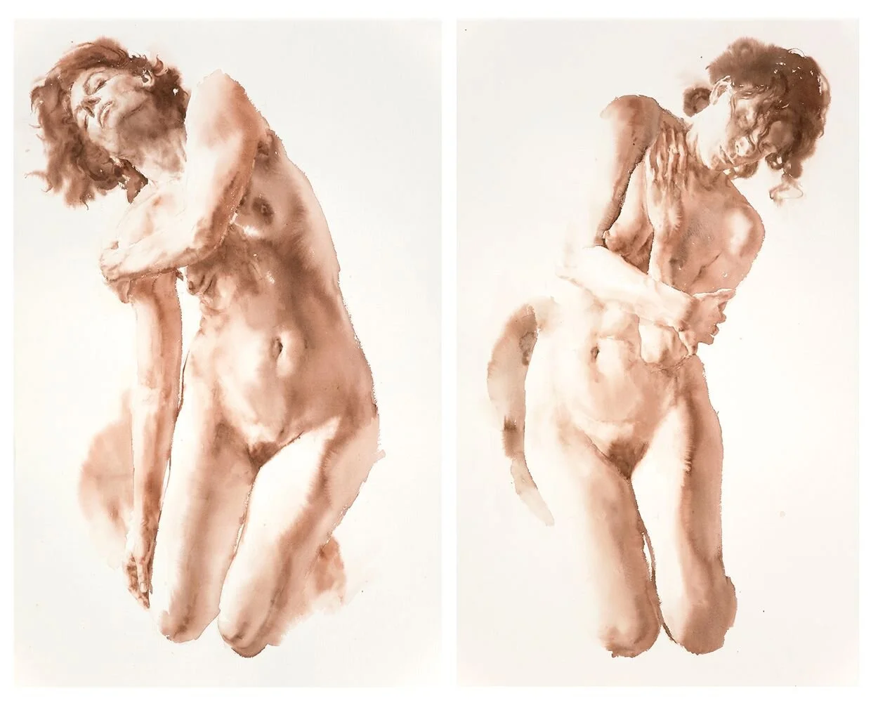 Wendy Artin’s delicious figure paintings are about immediacy, universality, reality. We can feel the poses of her expressive models: we are drawn into the language of the body, into the space of the paper, into the light as it becomes flesh and contour. Artin’s mark-making captures the crackling of light that shapes a physical body part or gesture, or becomes animate by its definable yet dissolving reality. By observing and painting only the essentials, Artin compels us, as the viewers, to engage with what is not painted, and to visually complete the contour of a shoulder, a back, an arm. Each painting captures and sustains the “magical” moment when illusion is created.
