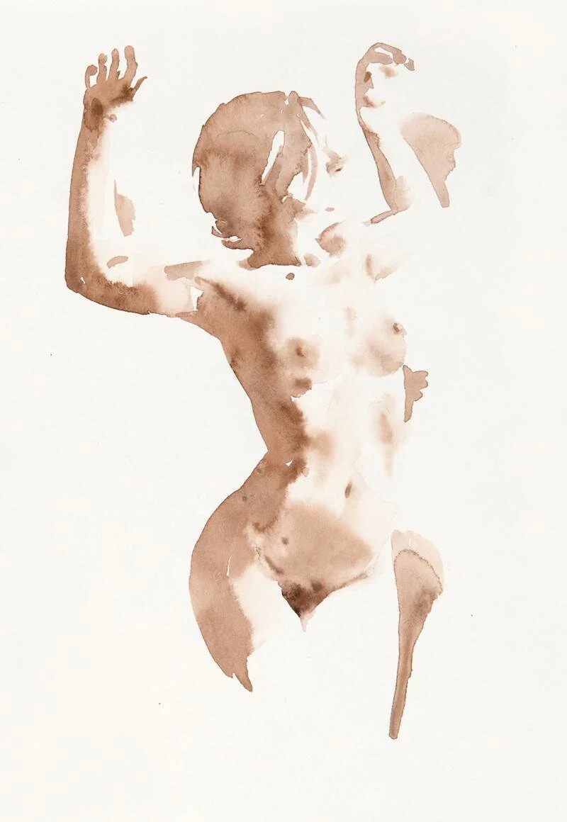 "Suddenly the whole of humanity was immobilized. Forced to abandon live sessions, I pulled out videos of models I had taken pre-lockdown. I became entranced by the positions in the middle of a movement, poses that are physical, private and oblivious, like someone exercising alone, poses that no model could ever hold long enough live for a watercolor to be made," she said.